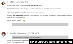 На форумі севастопольського ЗМІ «Форпост» у коментарях можна побачити й обурення читачів після заяви про пожежу на крейсері.