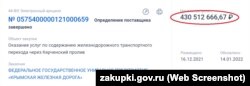 На початку січня Федеральне державне унітарне підприємство «Кримська залізниця» закупило послуги з утримання залізничного транспортного переходу через Керченську протоку. Початкова вартість послуг визначена в сумі 430,5 мільйона рублів, повідомляється на російському порталі держзакупівель. Але під час торгів була зменшена до 428 мільйонів рублів.
