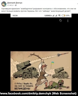 Ще один пост, через який до Дмитра Демчука виникли питання у російських силовиків у Криму, присвячений «животворчому Хаймарсу» – американській реактивній артилерійській системі, за допомогою якої Збройні сили України захищають свою країну.