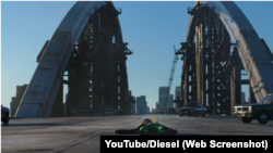 Подільсько-Воскресенський міст почали будувати в 1993 році. За призначенням його все ще не використовують, і він може бути не до вподоби багатьом киянам, але режисер рекламного ролика Diesel побачив у ньому локацію для зйомки реклами.