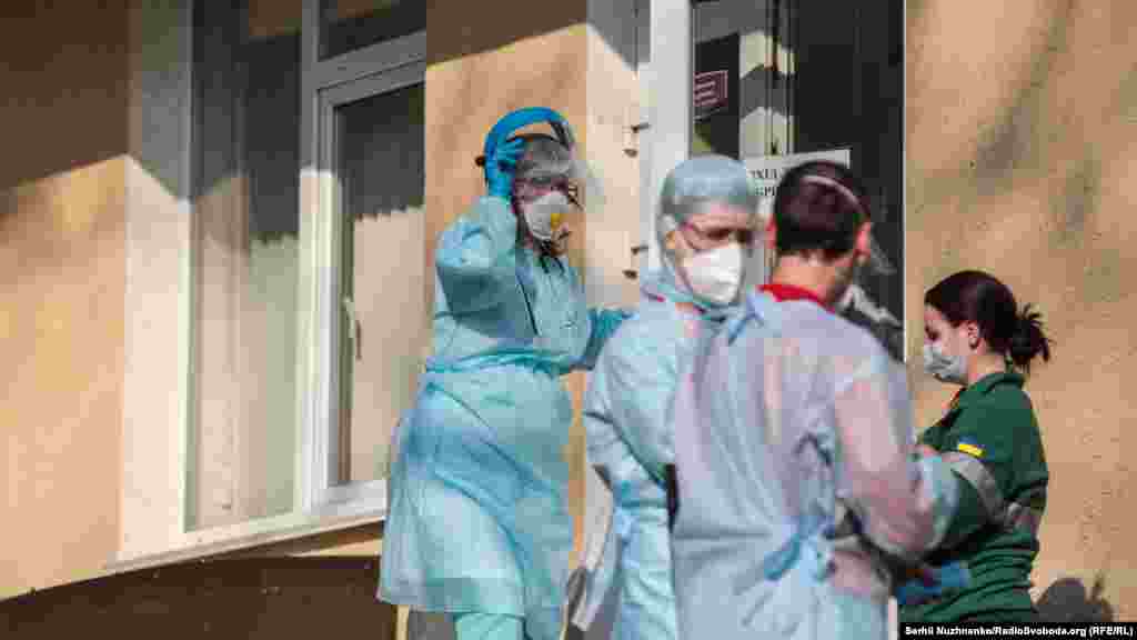 Напоготові тут чекають карети швидкої допомоги та медики у захисному спорядженні