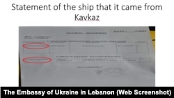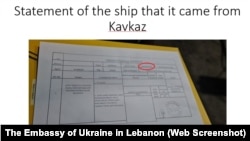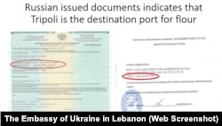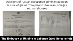Посольство України в Лівані представило також на пресконференції копії документів російської окупаційної влади Бердянська, які, за повідомленням українських дипломатів, свідчать про вивезення зерна з окупованих територій України.