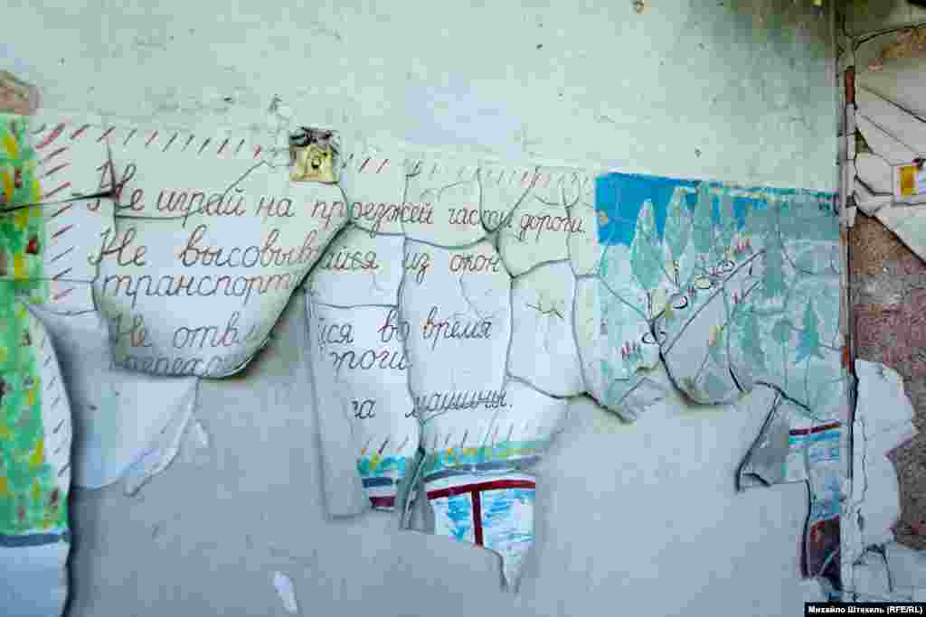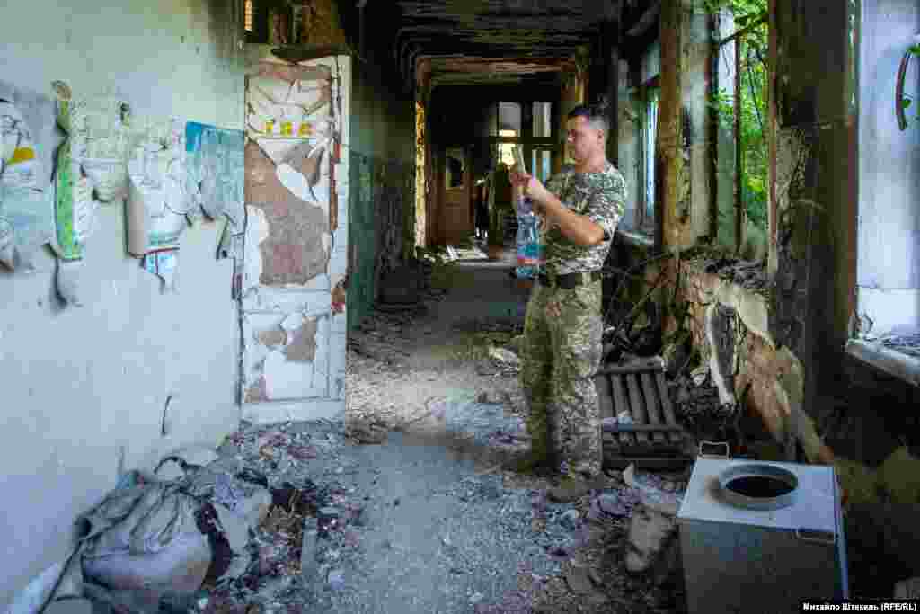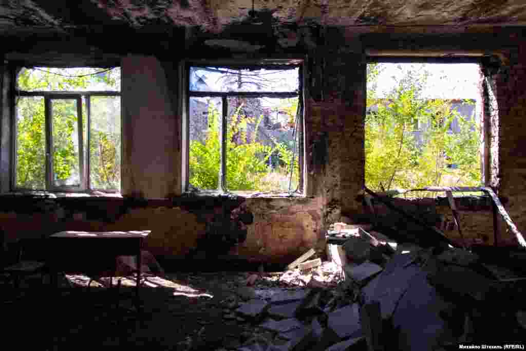 Розбитою стоїть центральна школа селища Піски