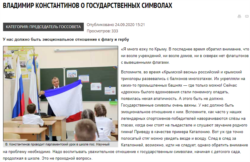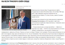 До речі, декілька днів тому, ті ж «Крымские известия» опублікували ще дві замітки, де Володимир Константинов вчить читачів, а також дітей на уроці в одній зі шкіл, як потрібно ставитися до російських символів. Одна з них: «Ми несли триколор у своєму серці» (думаю, тут не зовсім правда ‒ людина, яка народилася в радянські часи в Молдові, коли триколор був заборонений, і весь час прожила в Україні, Константинов якщо і знав про триколор, то зовсім поверхнево, і вже навряд чи він був у його серці. ‒ авт.).