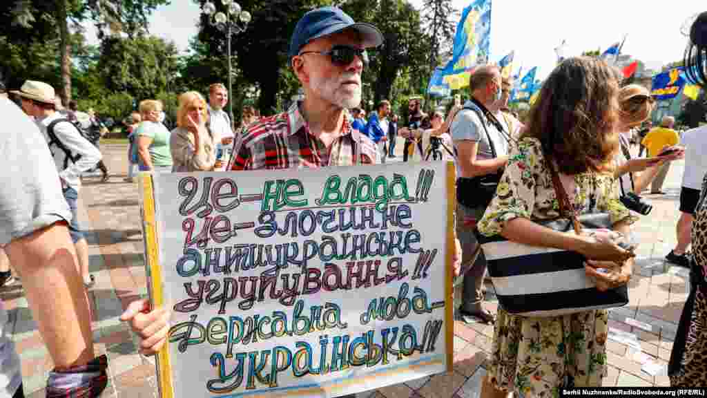 Акцію «Не дамо продати мову» провели 15 липня біля Верховної Ради громадські активісти. «Напередодні другої річниці набуття чинності закону про мову депутати планують незаконно вивести з-під його дії телебачення, прирівняти російську мову до української в освіті і зробити порушення мовного законодавства безкарним», – зазначили організатори акції.