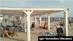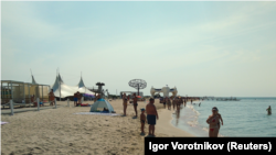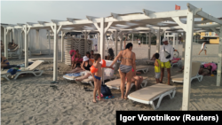 На пляжі теж не пропонують орендувати шезлонги або парасольки. Але відпочивальників це не зупиняє й вони все одно йдуть відпочивати туди. На пляжі досить багатолюдно.