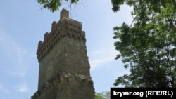 Ось це вежа Кріско. Вона майже ціла, але стіна, що тягнеться від неї до вежі Климента, помітно зруйнована.