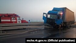 Як повідомляє підконтрольне Росії МНС Криму, сталося зіткнення вантажного автомобіля MAN і легкового автомобіля ВАЗ-2114.