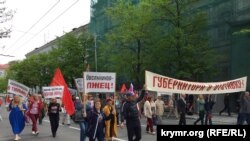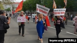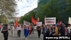 У Севастополі на традиційній першотравневій демонстрації йшла колона, активісти якої несли плакати з антиурядовими гаслами, повідомляє 1 травня кореспондент Крим.Реалії.