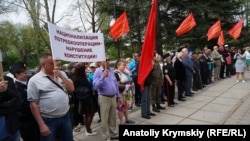 У сімферопольському сквері Героїв соціалістичної праці, на набережній Салгира, відбувся мітинг на честь 1 травня, на якому учасники закликали не голосувати на місцевих російських виборах за кандидатів від партії «Единая Россия».