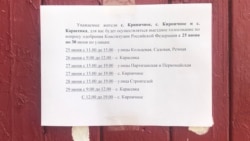 Російська влада Криму організовує виїзні голосування щодо поправок до Конституції Росії з 25 до 30 червня для жителів сільської місцевості. Оголошення про це розміщуються в селах Криму, повідомляє кореспондент Крим.Реалії.