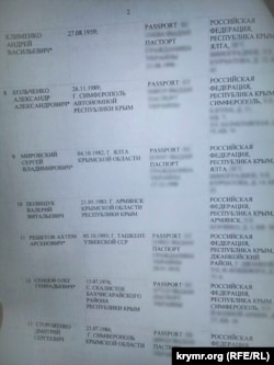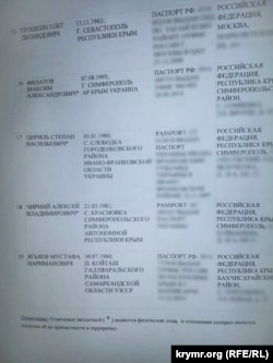 У документі повідомляють, що в списку кримчан зірочкою позначені ті, «відносно кого є відомості про їхню причетність до тероризму».