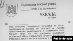 Найбільшим каменем спотикання між чиновниками міськради і громадськими активістами було питання щодо виступів представників українського шоу-бізнесу, які гастролювали і далі бувають з концертами у Росії. На останній сесії міськради депутати проголосували лише за назву ухвали «Про заборону проведення концертів та інших розважальних заходів на території Львова представниками українського та іноземного шоу-бізнесу, котрі під час де-факто російсько-української війни підтримують агресію Росії, пропагують сепаратизм в Україні», а редакційній комісії доручили написати сам текст документа.