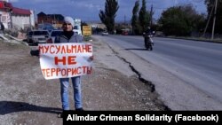 Регіональний представник «Кримської солідарності» Алімдар опублікував у фотографії одиночних пікетів. Активісти також вийшли з плакатами «Пошук терористів – безнадійна справа», «Мусульмани не терористи» та іншими.