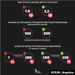 Президент України Володимир Зеленський 17 жовтня підписав законопроєкти 1073 та 1053-1, які передбачають, з одного боку, спрощення фіскальної політики, з іншого – посилення відповідальності за порушення та нові вимоги для підприємців. Радіо Свобода підготувало інфографіку, щоб показати, що зміниться, коли зміни в Податковому кодексі набудуть чинності.