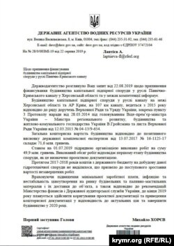 Дамбу на Північно-Кримському каналі, неподалік від адміністративного кордону з Херсонською областю, обіцяють добудувати в 2020 році. Про це йдеться у відповіді Державного агентства водних ресурсів України на інформаційний запит Крим.Реалії.