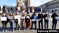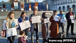 У Києві на Майдані Незалежності 1 жовтня відбулася акція на підтримку громадського журналіста, блогера з Криму Нарімана Мемедемінова, якого російські правоохоронці звинувачують у публічних закликах до тероризму.