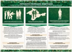 Крім того, йдеться про використання Росією «зелених чоловічків» (російських військових без розпізнавальних знаків) і вчинення Росією «віроломства і незаконного використання емблем і уніформи супротивника» під час блокування та захоплення військових частин Збройних сил України.