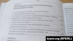 Авторка книги докладно описує стан системи кримських ЗМІ напередодні окупації півострова. На той час у Криму працювали 86 телерадіоорганізацій, у тому числі 79 місцевих, 14 телекомпаній, 44 кабельні, 7 комунальних і 78 приватних радіоредакцій. Працювали 6 інформаційних агенцій. У Криму було зареєстровано 1240 друкованих періодичних видань – 999 газет, 175 журналів, 30 бюлетенів, 14 альманахів, 33 збірки.