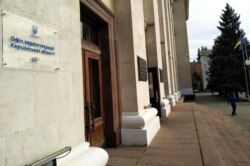 Новенька табличка на фасаді будівлі Херсонської облдержадміністрації. Тут, в одному з приміщень на першому поверсі, і розташували Офіс євроінтеграції Херсонської області, точніше його повна назва – «Агенція регіонального розвитку «Офіс євроінтеграції» Херсонської області».