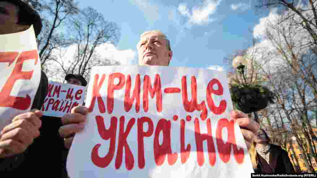 У Києві в парку імені Тараса Шевченка відбулася акція солідарності з кримчанами. Організатори заходу повідомляли, що виходять на акцію 9 березня, бо щороку в день народження українського поета Шевченка «кримчани демонструють свою солідарність і підтримку незалежної України, ризикуючи потрапити під прес репресивної машини».