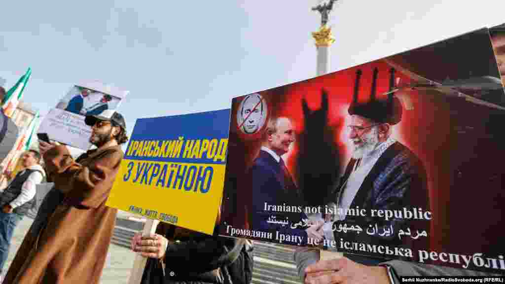 Представники іранської діаспори на Майдані Незалежності у Києві провели акцію протесту проти підтримки офіційною владою Ірану агресії Росії проти України. Учасники акції скандували «Слава Україні» і публічно засудили постачання Іраном дронів для російської армії, якими вона атакує українські міста, убиває цивільних та нищить життєво необхідну інфраструктуру.