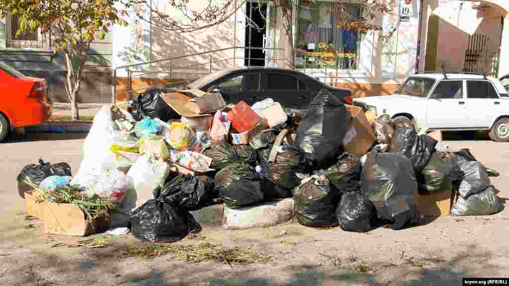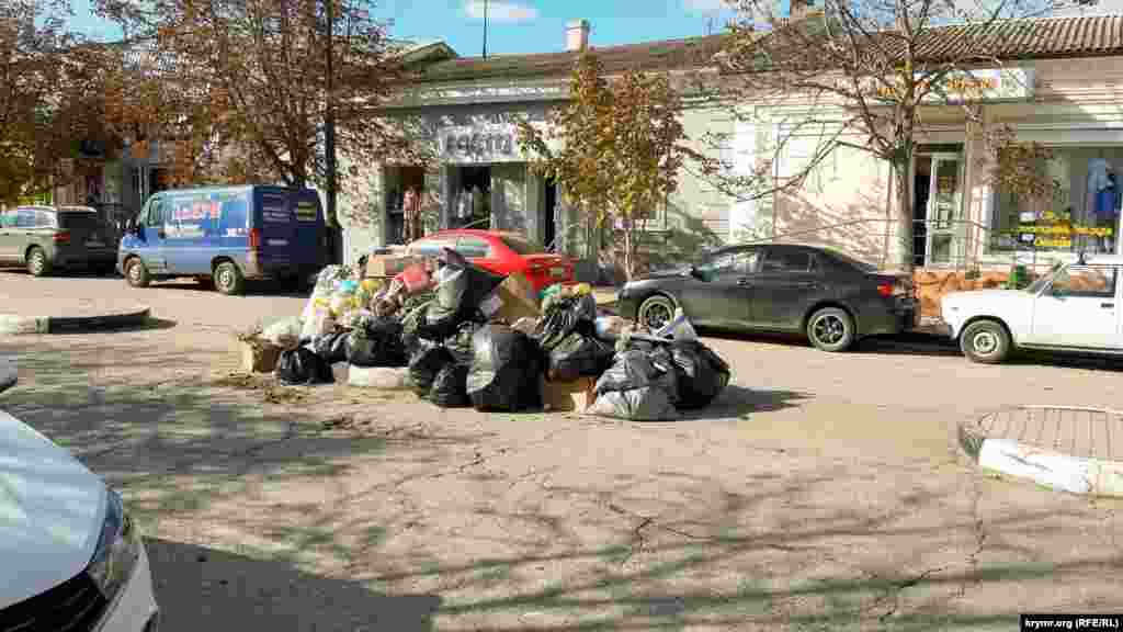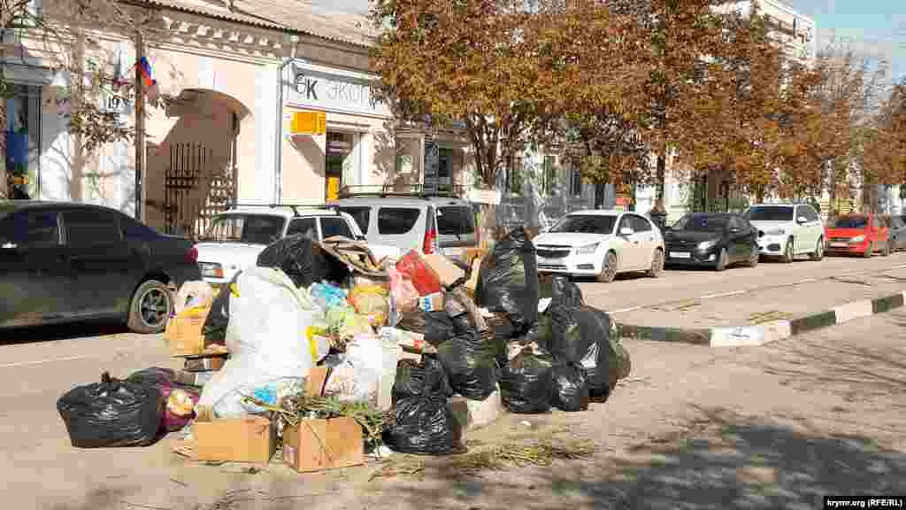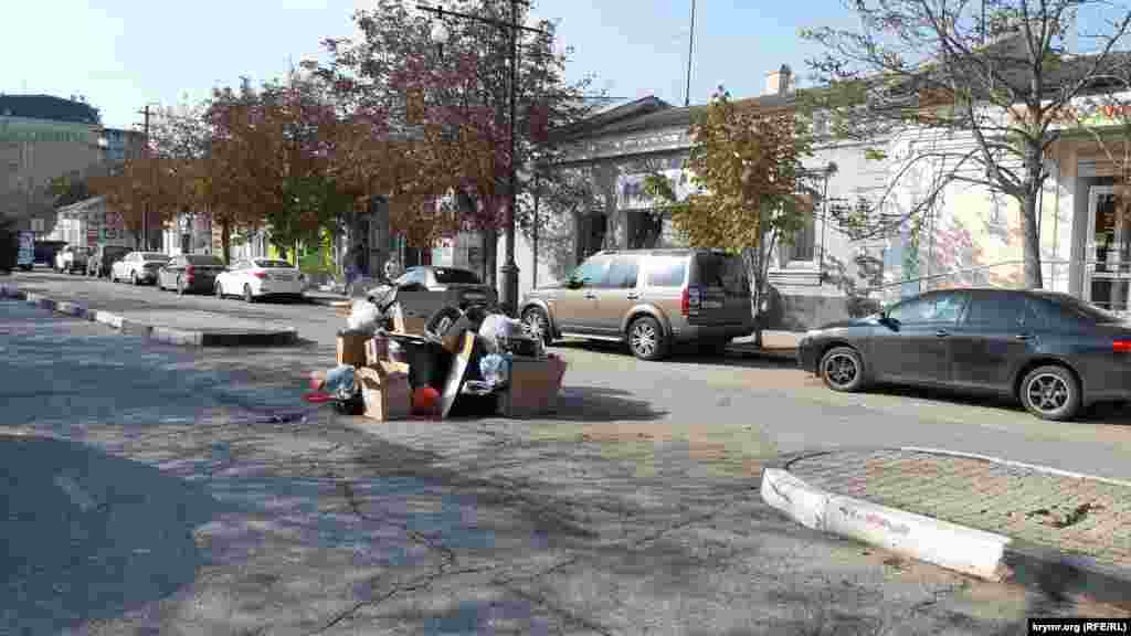 У центрі Керчі місцеві жителі складують побутові відходи прямо посеред вулиці. Купи сміття лежать і на одній із центральних вулиць міста – вулиці Козлова, яка з'єднує вулицю Леніна і центральний ринок.