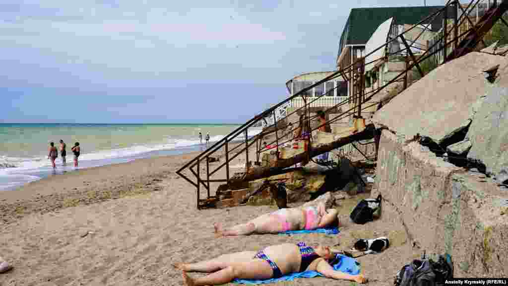 Втім, для провінційної Миколаївки така картина згасання «оксамитового» сезону в цю пору року цілком характерна. Проте на узбережжі ще залишаються досвідчені пляжники, яких не збентежити каламутним морем і штормом.