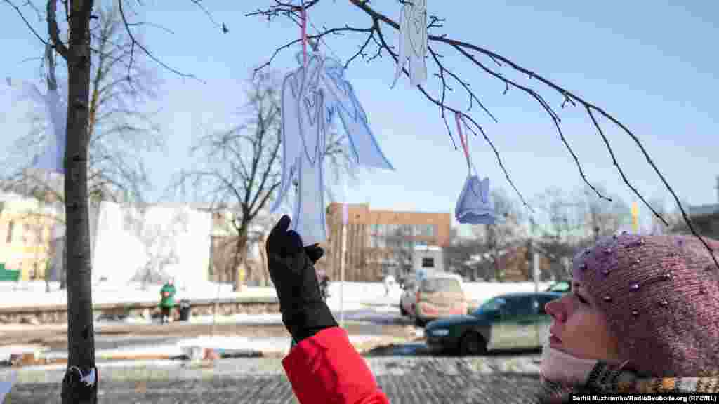Паперових ангелів у Києві розвішують на деревах алеї Героїв Небесної сотні