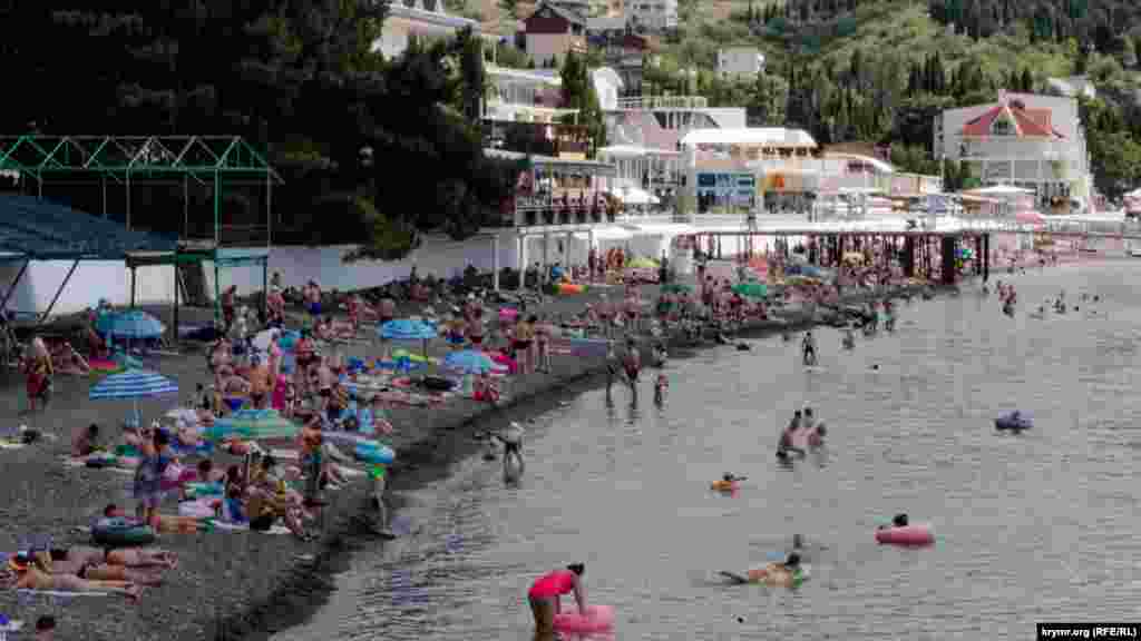 Тут на пляжі людно