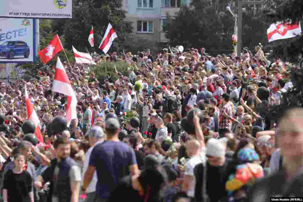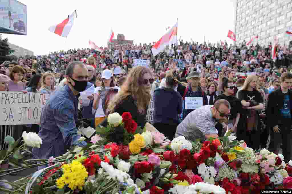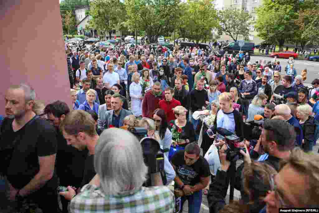 Приблизно тисяча осіб прийшли на церемонію прощання з 34-річним мінчанином. Вони стояли на вулиці біля жалобної зали, де перебували рідні та близькі Олександра Тарайковського. Міліція не втручалася.