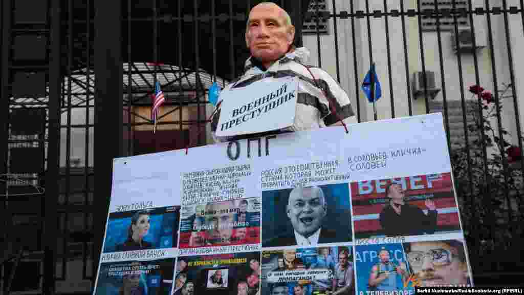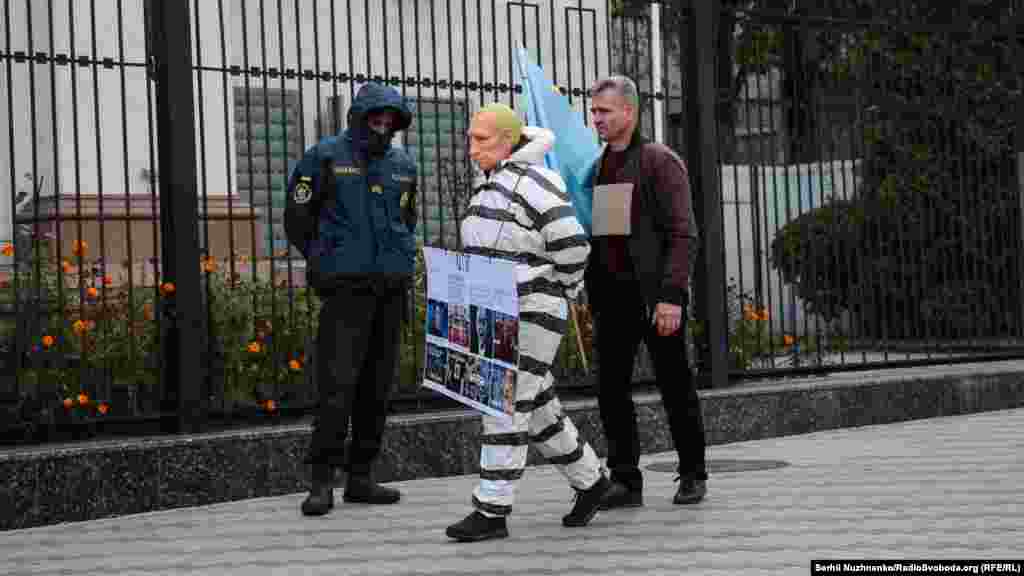 Під час акції колишні політв'язні – українці та кримські татари, які були в ув'язненні у Росії та окупованому Криму – дали свідчення в імпровізованому «Гаазькому суді». Таким чином активісти вирішили «привітати» з днем народження президента Росії.