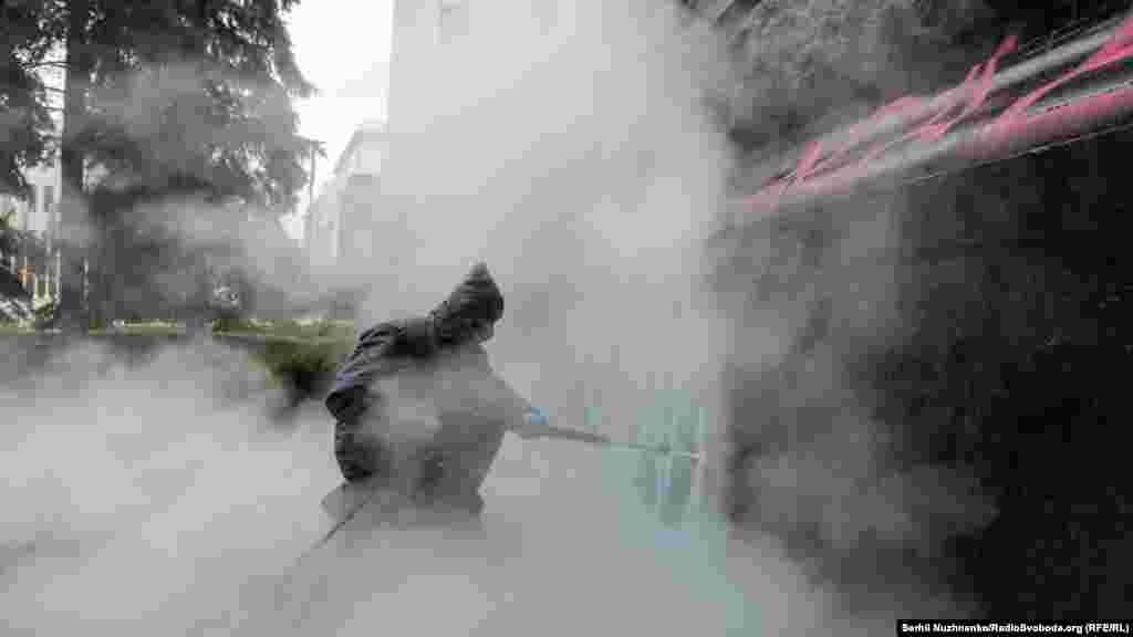 На Банковій розпочали очистку стін Офісу президента (фотогалерея)
