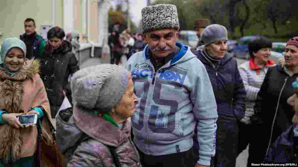 Бекір Дегерменджі й Асан Чапух після вироку на ганку суду спілкуються з людьми, які прийшли їх підтримати