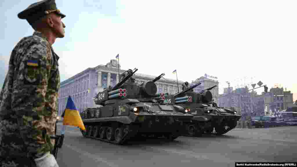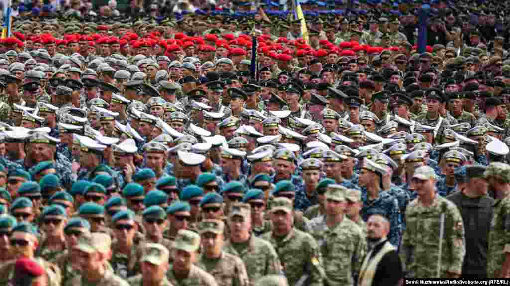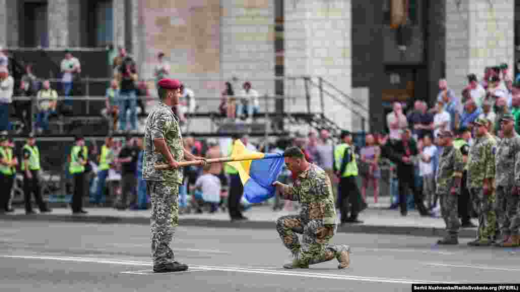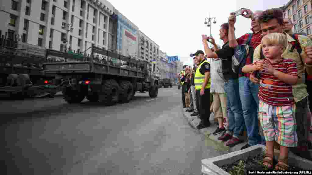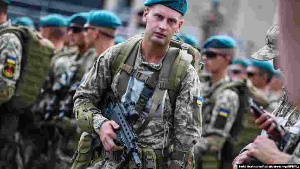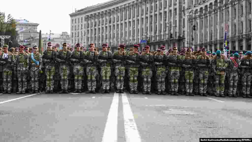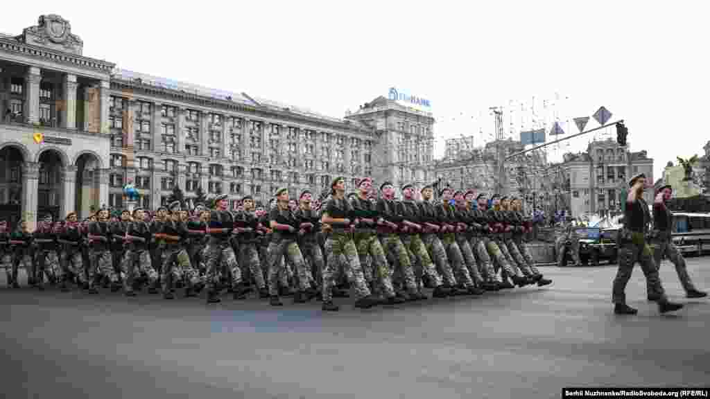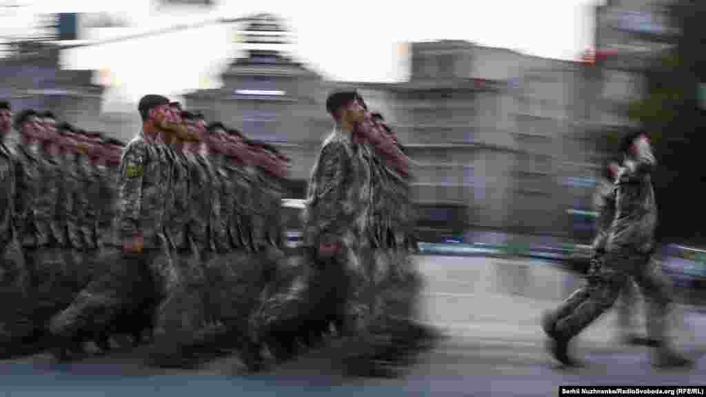 18 серпня ввечері на головній вулиці столиці – Хрещатику – відбулося перше вечірнє тренування особового складу, що традиційно залучають до військового параду до Дня Незалежності України. Цього року країна святкуватиме 27-му річницю.