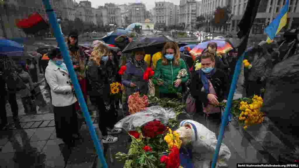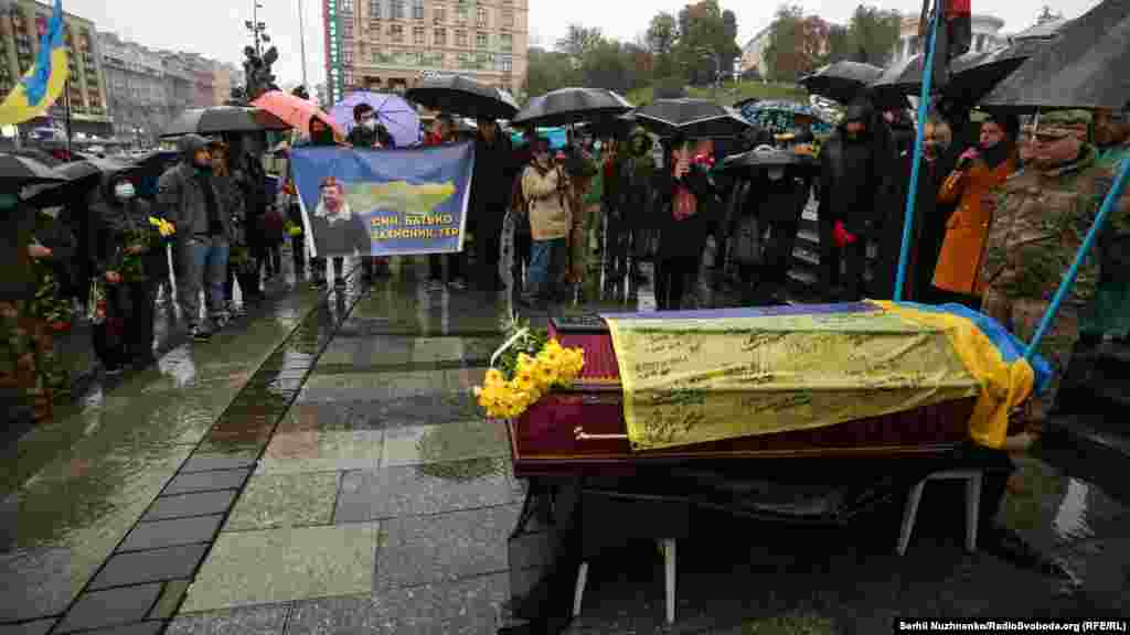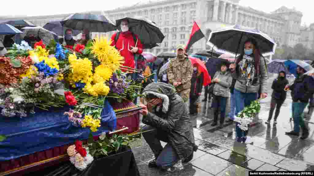 Прощалися із чоловіком на тому ж місці, де він вчинив акт самоспалення. У ніч на 11 жовтня Микола Микитенко підпалив себе на майдані Незалежності в Києві.
