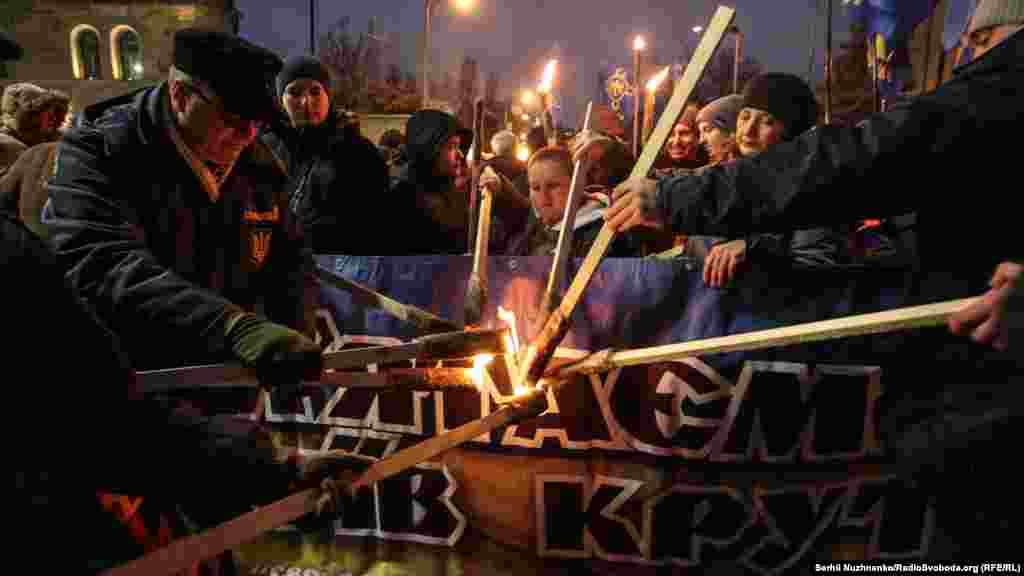 По закінченню реконструкції від Арсенальної площі до Аскольдової могили пройшов смолоскиповий марш до Дня пам'яті Героїв Крут.