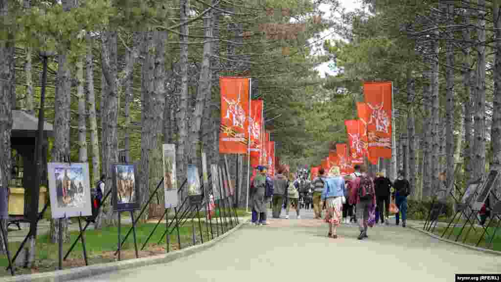 На центральній алеї організатори розмістили репродукції картин на тему оборони Севастополя