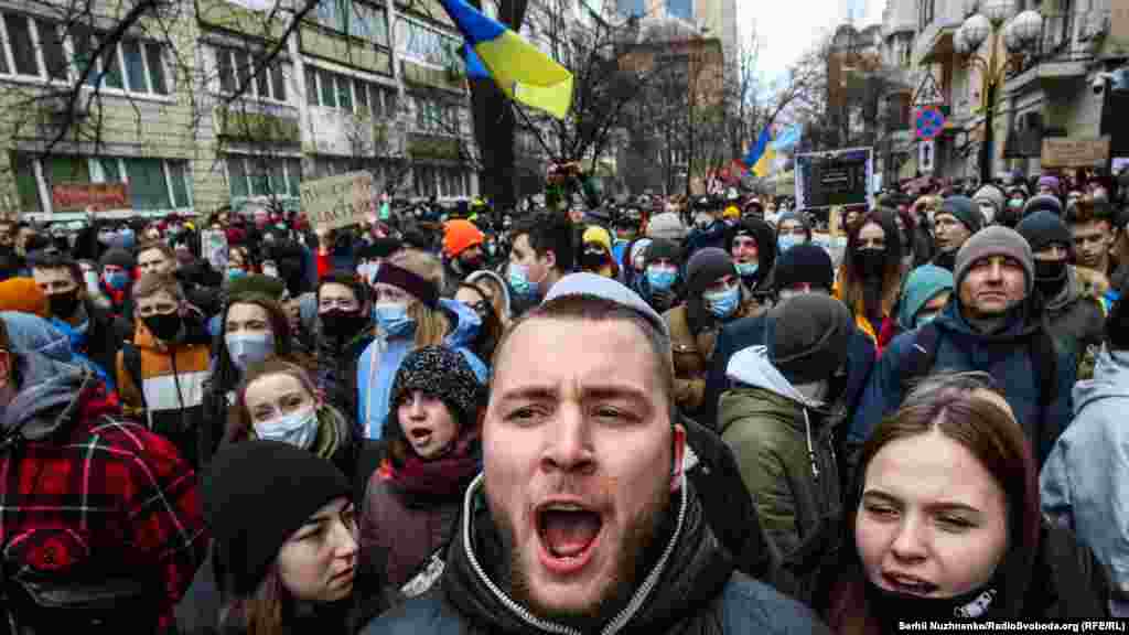 Декілька тисяч людей прийшли в суботу, 27 лютого, до Офісу президента України на знак протесту проти вироку одеському активісту Сергію Стерненку.