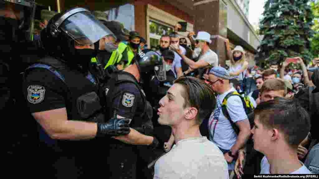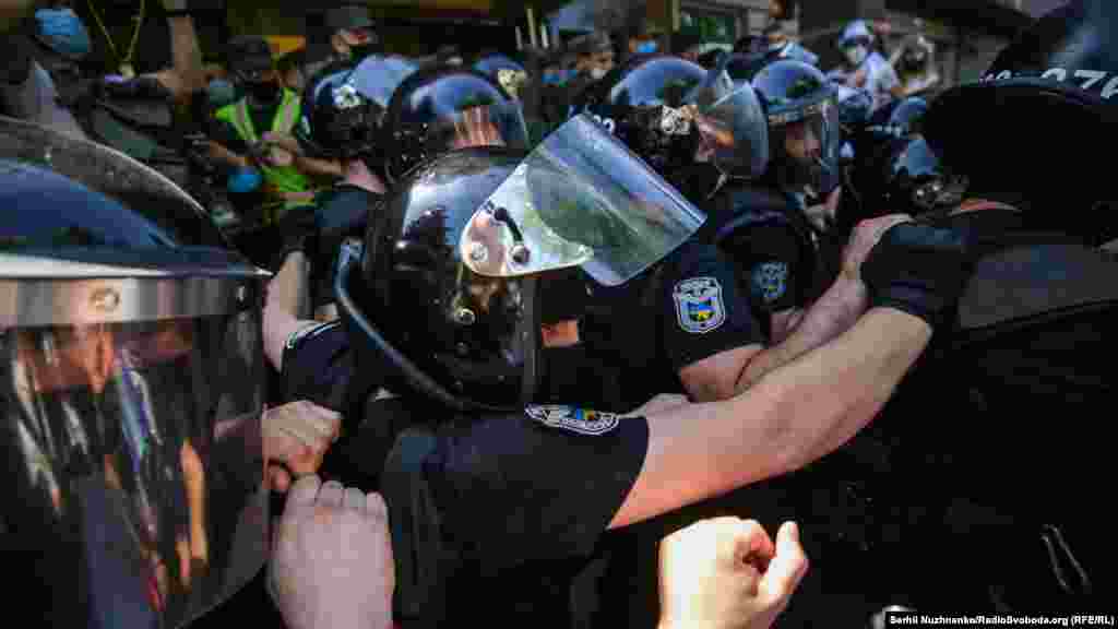 Шевченківський райсуд Києва сьогодні, 12 червня, розглядає справу активіста Сергія Стерненка. Тим часом під стінами суду між активістами і правоохоронцями виникли сутички.