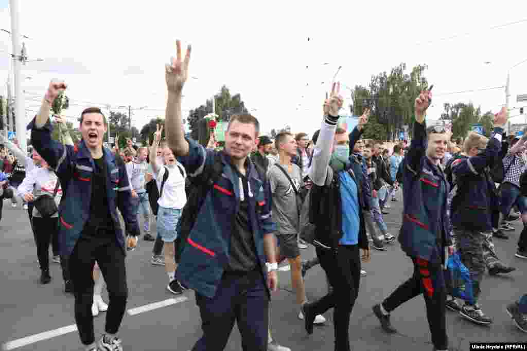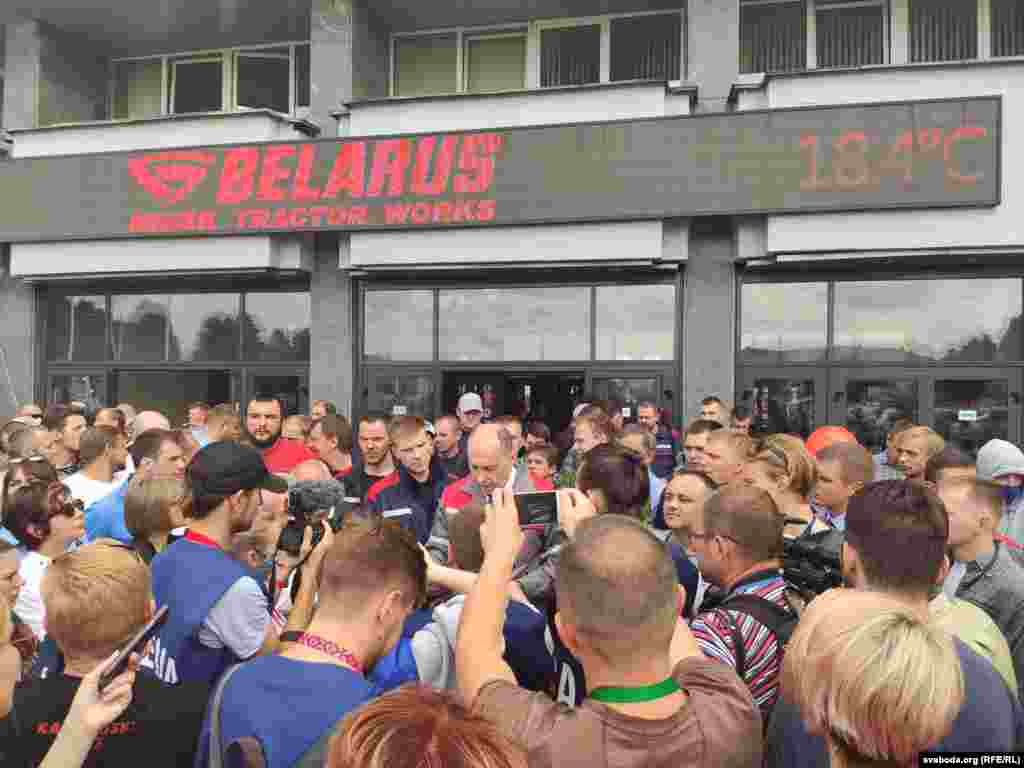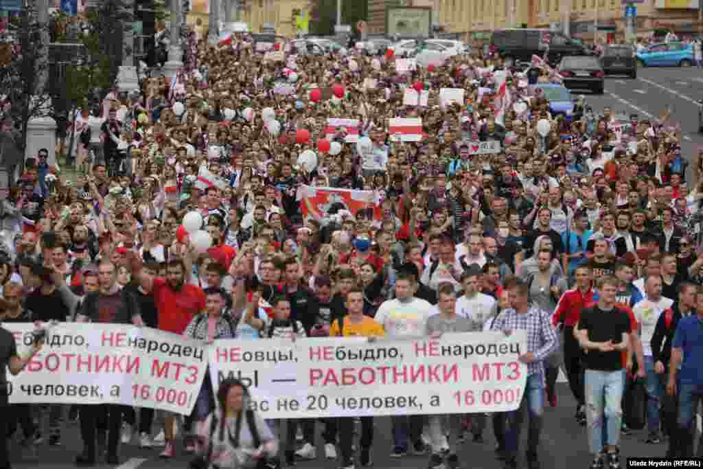 У Білорусі 14 серпня біля входу на Мінський тракторний завод (МТЗ) відбувся мітинг робітників. Прем'єр-міністр Раман Галучанка прибув на МТЗ, але він проігнорував протестувальників на площі перед заводом і пішов до адміністрації. Тоді робітники рушили ходою до Будинку уряду.