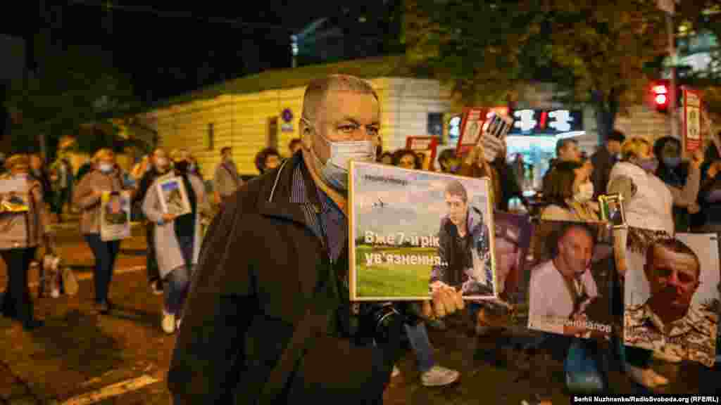 Сьогодні у Києві відбулась всеукраїнської акції «Нагадай про кожного» на підтримку політв'язнів, які досі перебувають у Росії, на непідконтрольних Україні територіях Донбасу, та в анексованому Криму.