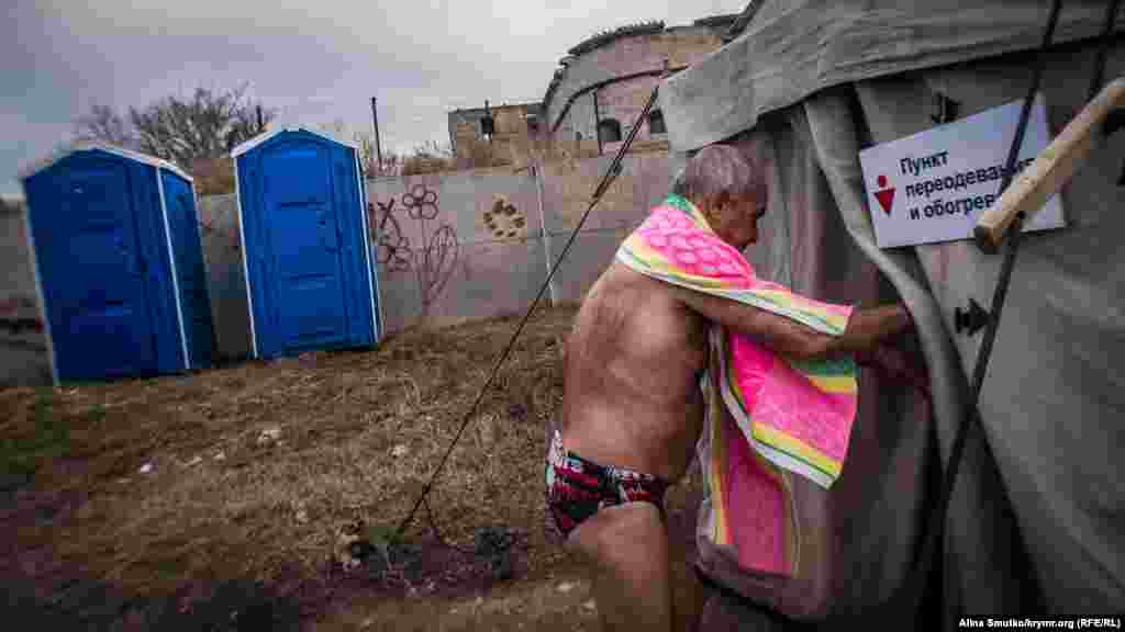 Для охочих поринути працював пункт обігріву та чергував наряд медиків і рятувальників.