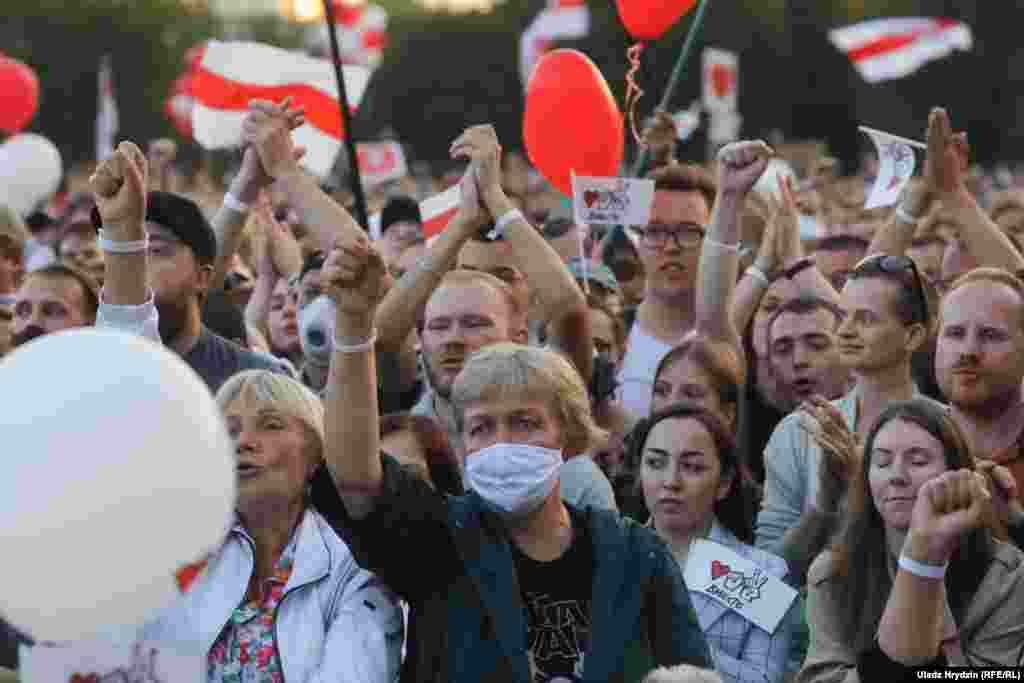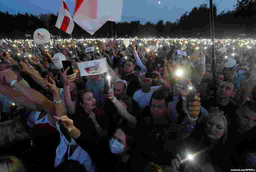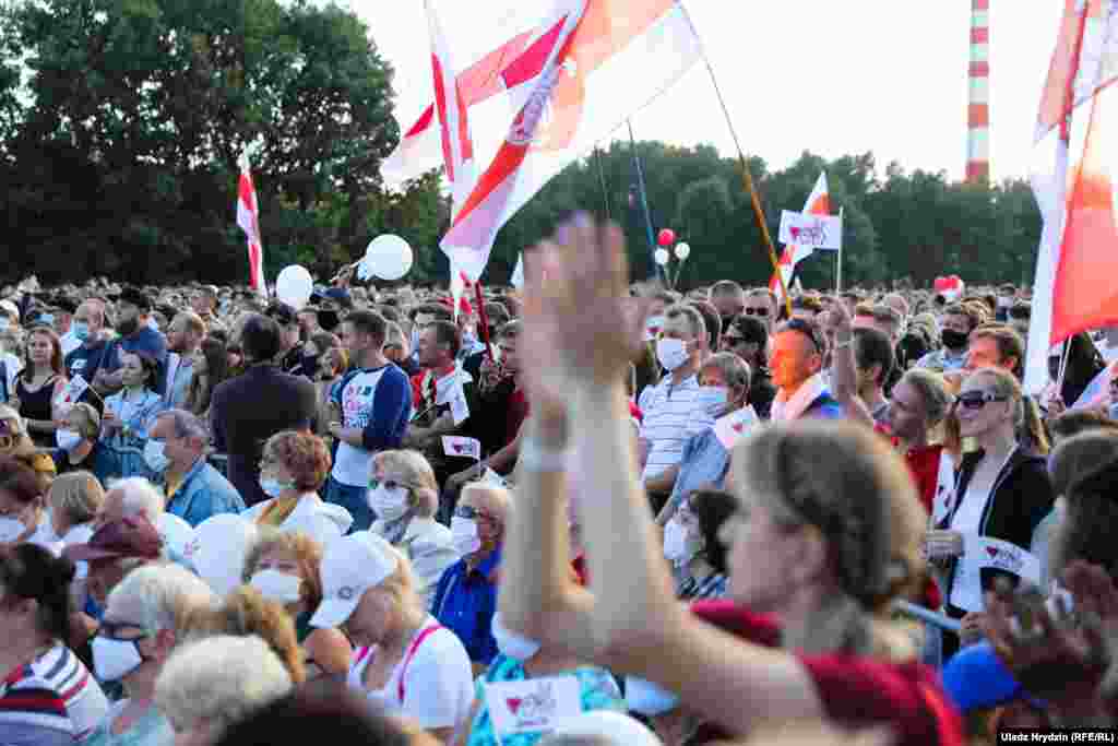 У Мінську 30 липня в парку Дружби народів відбувся мітинг-концерт на підтримку опозиційної кандидатки у президенти Республіки Білорусь Світлани Тихановської. За даними волонтерської служби «Весна», у дозволеній передвиборчій акції взяли участь не менше 63 тисяч осіб. Більше світлин з події – у фоторепортажі Білоруської редакції Радіо Вільна Європа/Радіо Свобода.