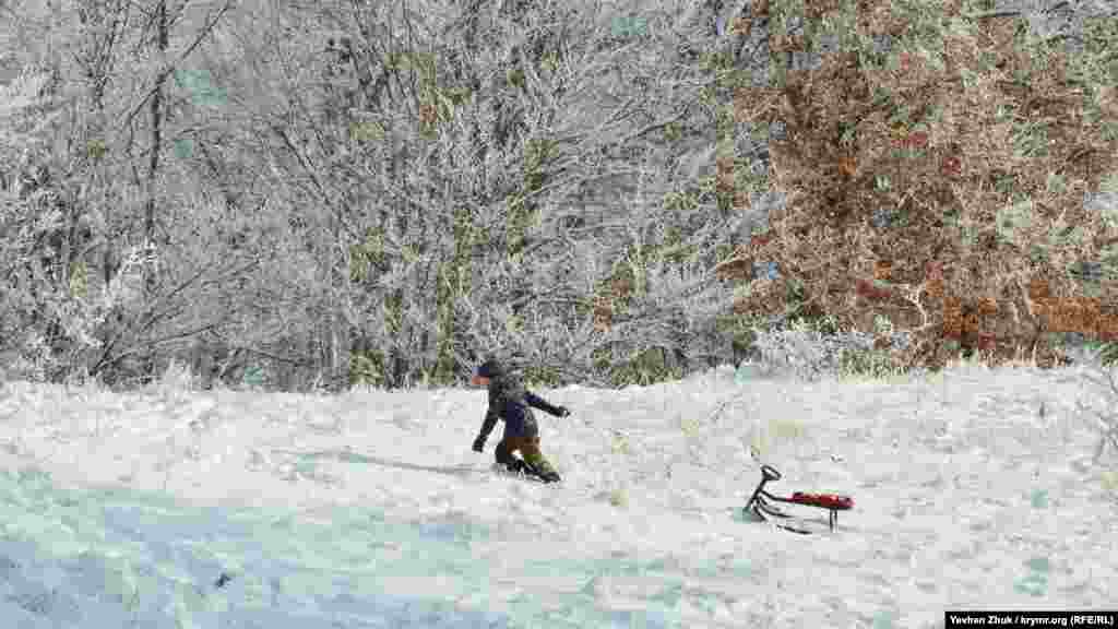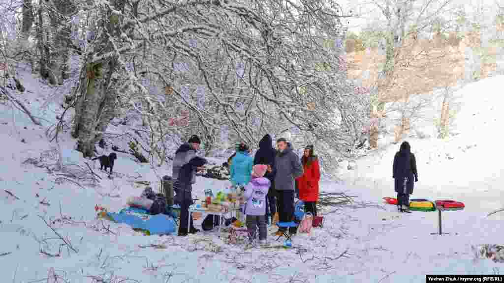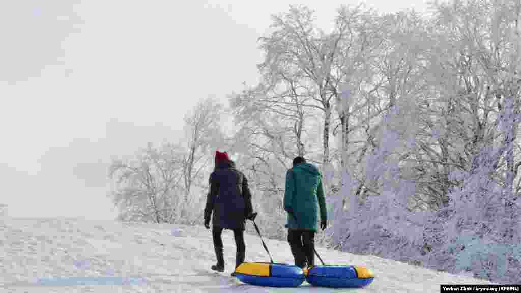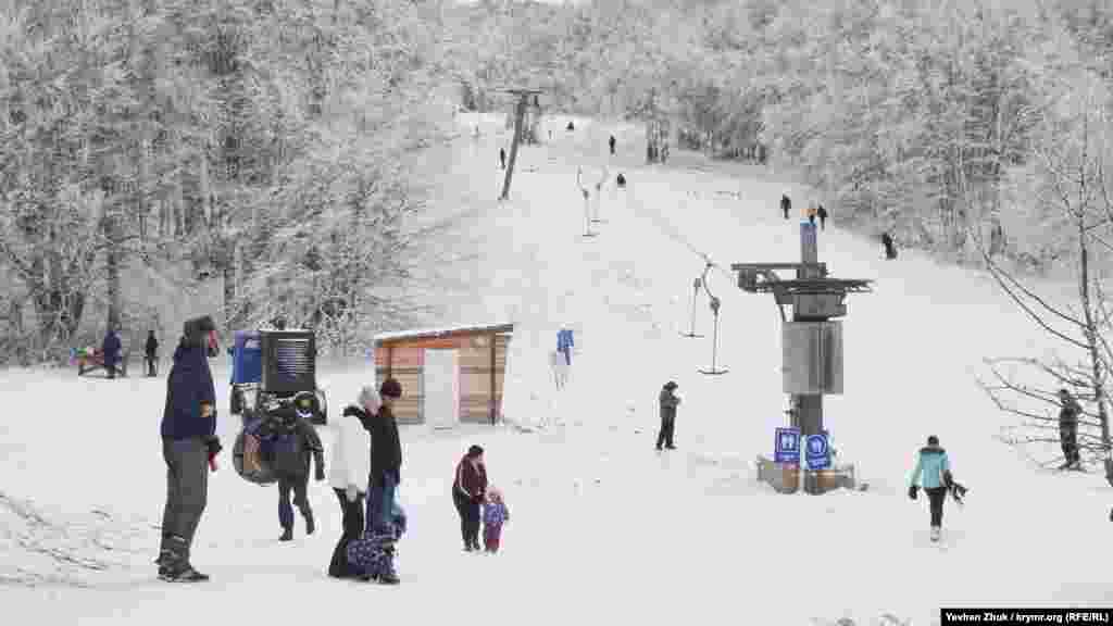 На початку нового року на плато Ай-Петрі випав сніг і сотні кримчан на автомобілях вирушили на гору, щоб покататися на лижах, сноубордах або санках, а також щоб просто побувати в «сніговій казці».
