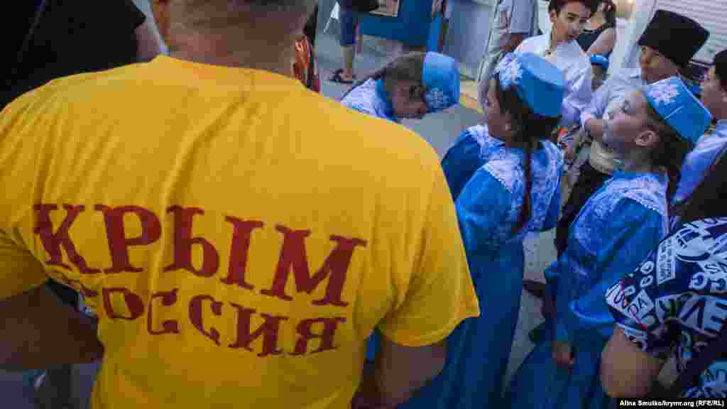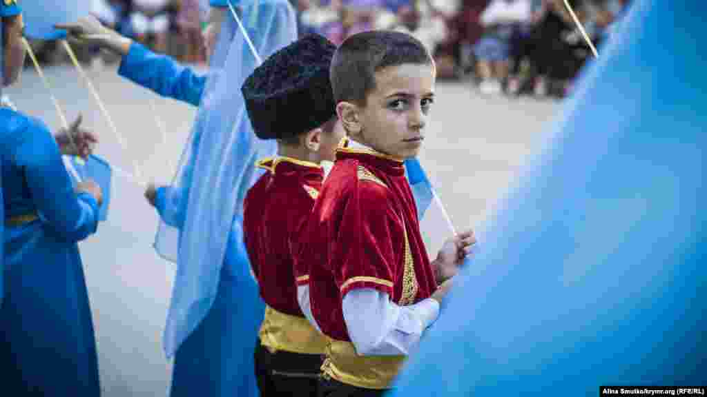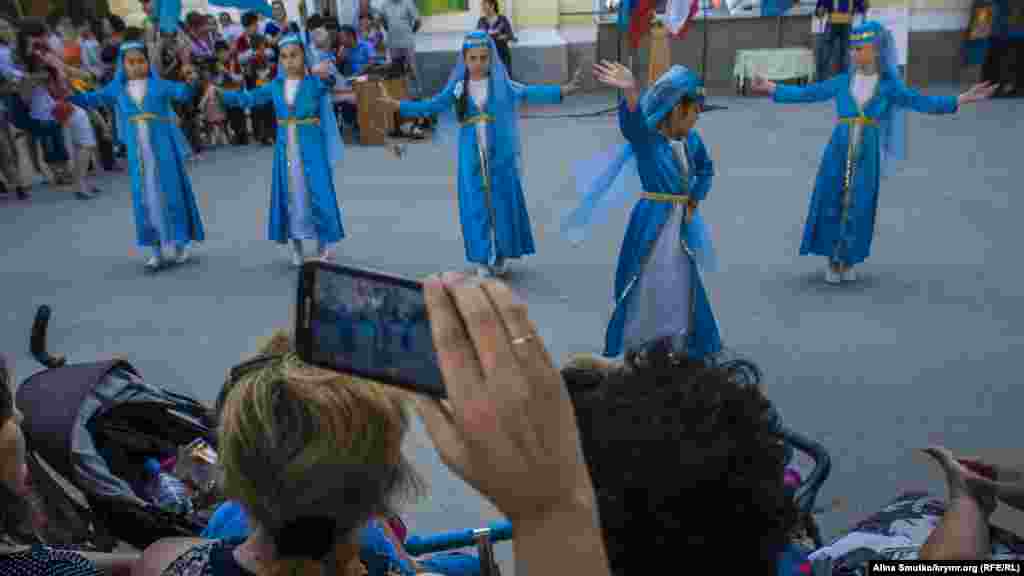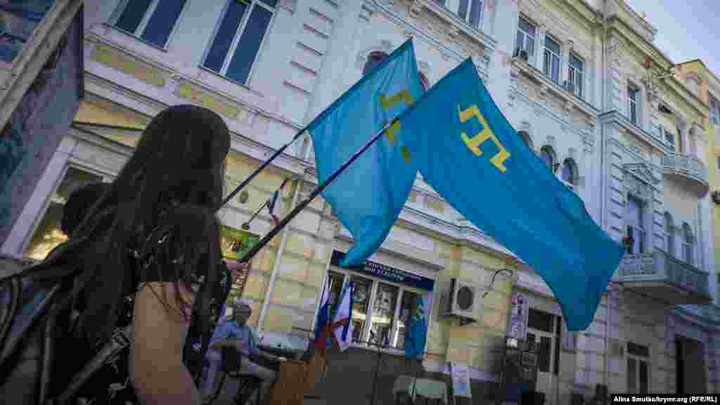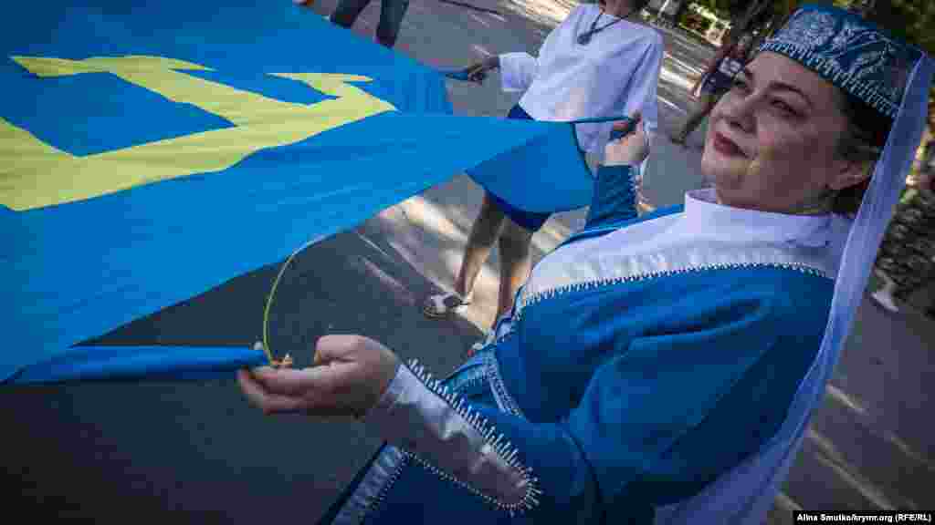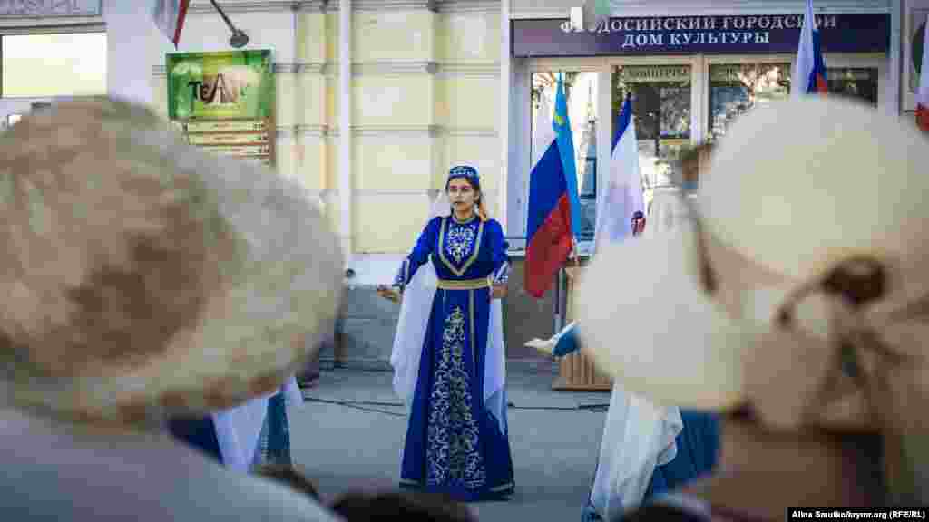 День національного прапора кримських татар відзначили в Феодосії. Кілька десятків жителів міста й туристів зібралися на привокзальній площі подивитися на святковий концерт. Крім народних пісень і танців, артисти винесли на площу величезний прапор і прочитали молитву разом із імамом.