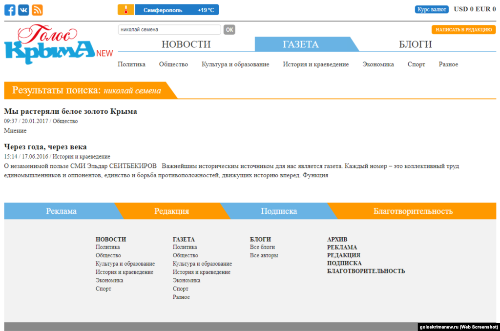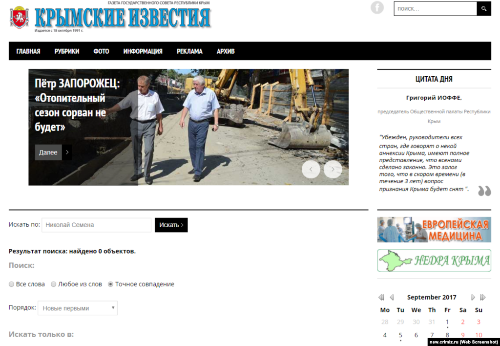 Провідні кримські ЗМІ, ніколи не згадували Миколу Семену