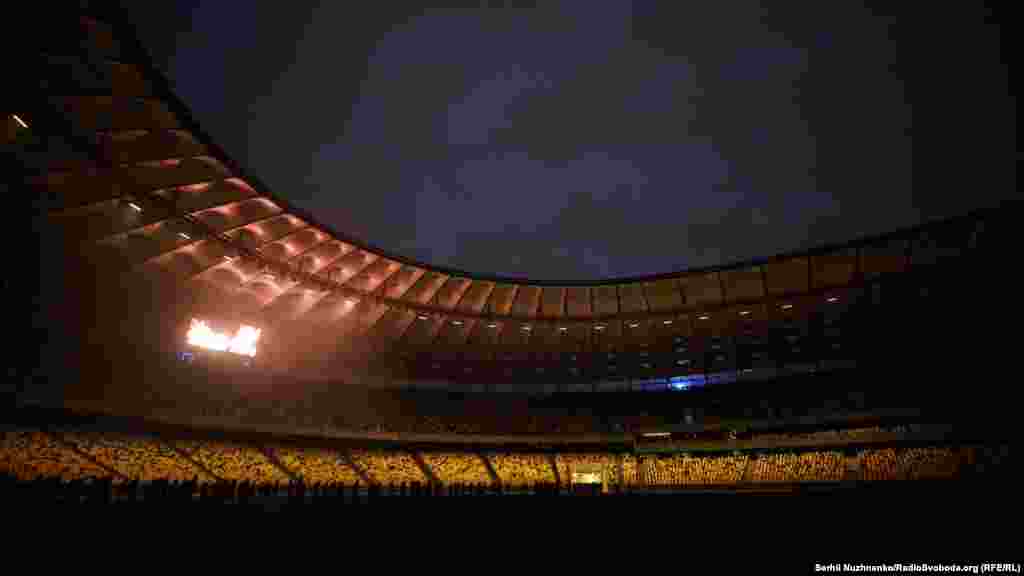 На стадіоні «Олімпійський» у Києві 2 липня активісти влаштували вогняне шоу на підтримку засудженого в Росії українського режисера Олега Сенцова.