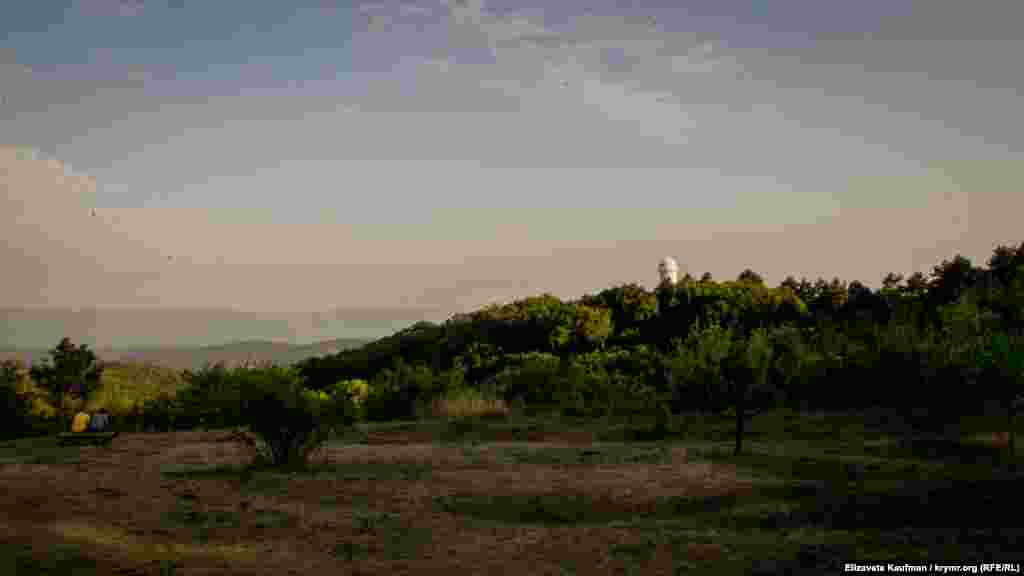 На першому плані – біла «коробочка», в якій надійно укритий телескоп. Вночі дах цієї «коробочки» відсувається – і туристам показують Сатурн і Юпітер. На другому плані – 1,25-метровий астрономічний дзеркальний телескоп 11 (АЗТ-11)