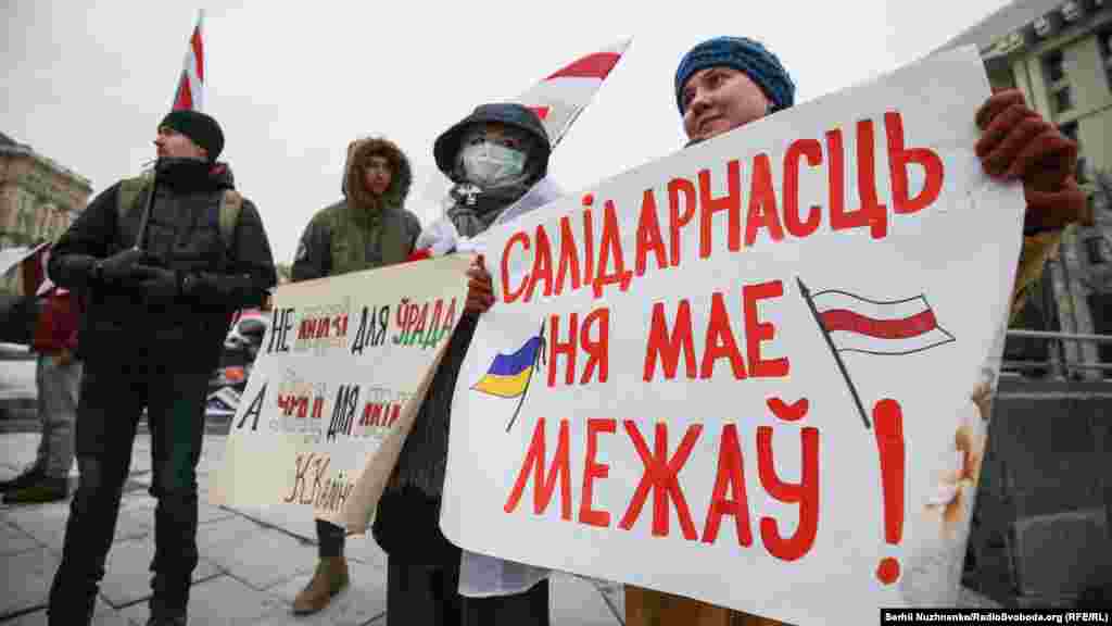 До акції доєдналися близько ста людей, кияни, громадяни Білорусі, які були змушені виїхати з країни